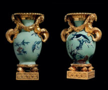 Les pièces de la Collection Al Thani exposées à cette occasion étaient une tête en calcédoine de l’empereur Hadrien, provenant de l’atelier de la cour de Frédéric II, empereur du Saint-Empire romain germanique de 1220 à 1250, et remontée à la fin du XVIe siècle sur un buste en vermeil décoré d’émaux et de perles ; une spectaculaire horloge musicale à automates fabriquée à Anvers autour de 1777 pour le duc Charles-Alexandre de Lorraine, beau-frère de l’impératrice Marie-Thérèse et gouverneur général des Pays-Bas des Habsbourg ; et trois supports pour des portraits miniatures, réalisés vers 1748, chacun sculpté dans une nacre chatoyante et surmonté d’un petit angelot en or tenant un portrait dans un cadre incrusté de diamants.