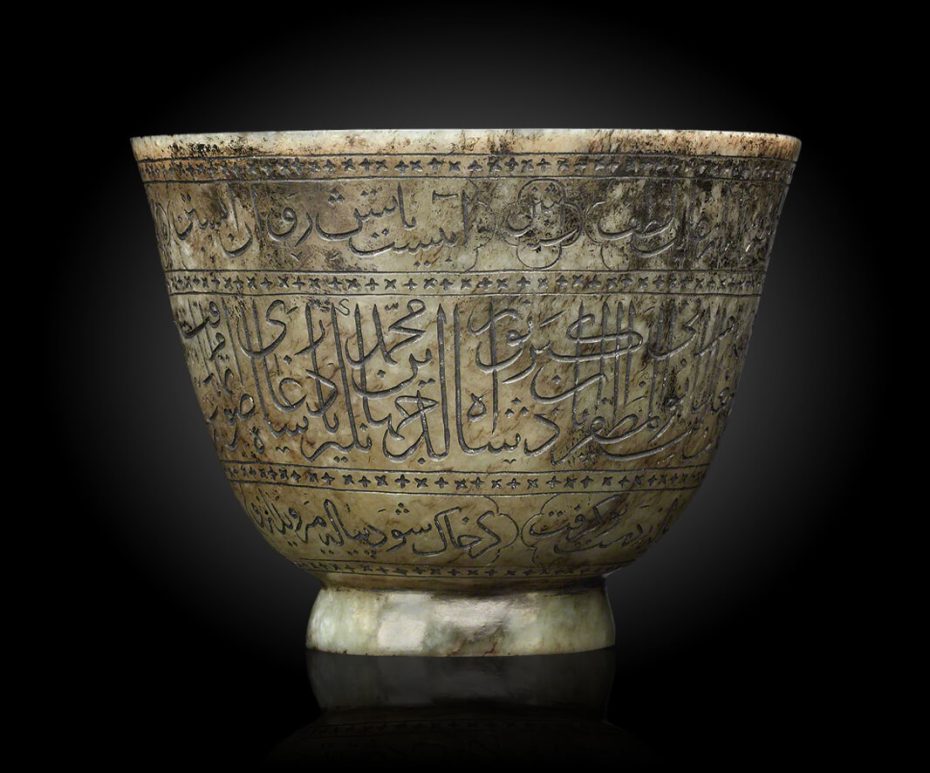 This wine cup, whose inscriptions tell us that it was intended for the exclusive use of Jahangir (r. 1605-1627) is, to date, the oldest piece of jade tableware that can be linked to a Mughal emperor. These inscriptions also testify to the sovereign's taste for Sufi poetry, which praised drunkenness as one of the paths to union with God.